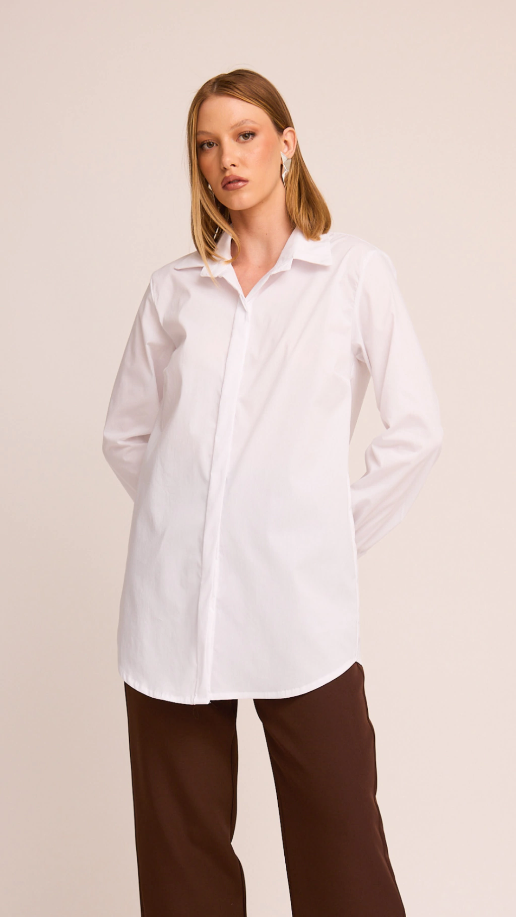 A tradicional camisa em uma versão maxi que eleva qualquer produção. A Camisa Giovana traz estrutura e versatilidade, ideal para composições modernas e elegantes.