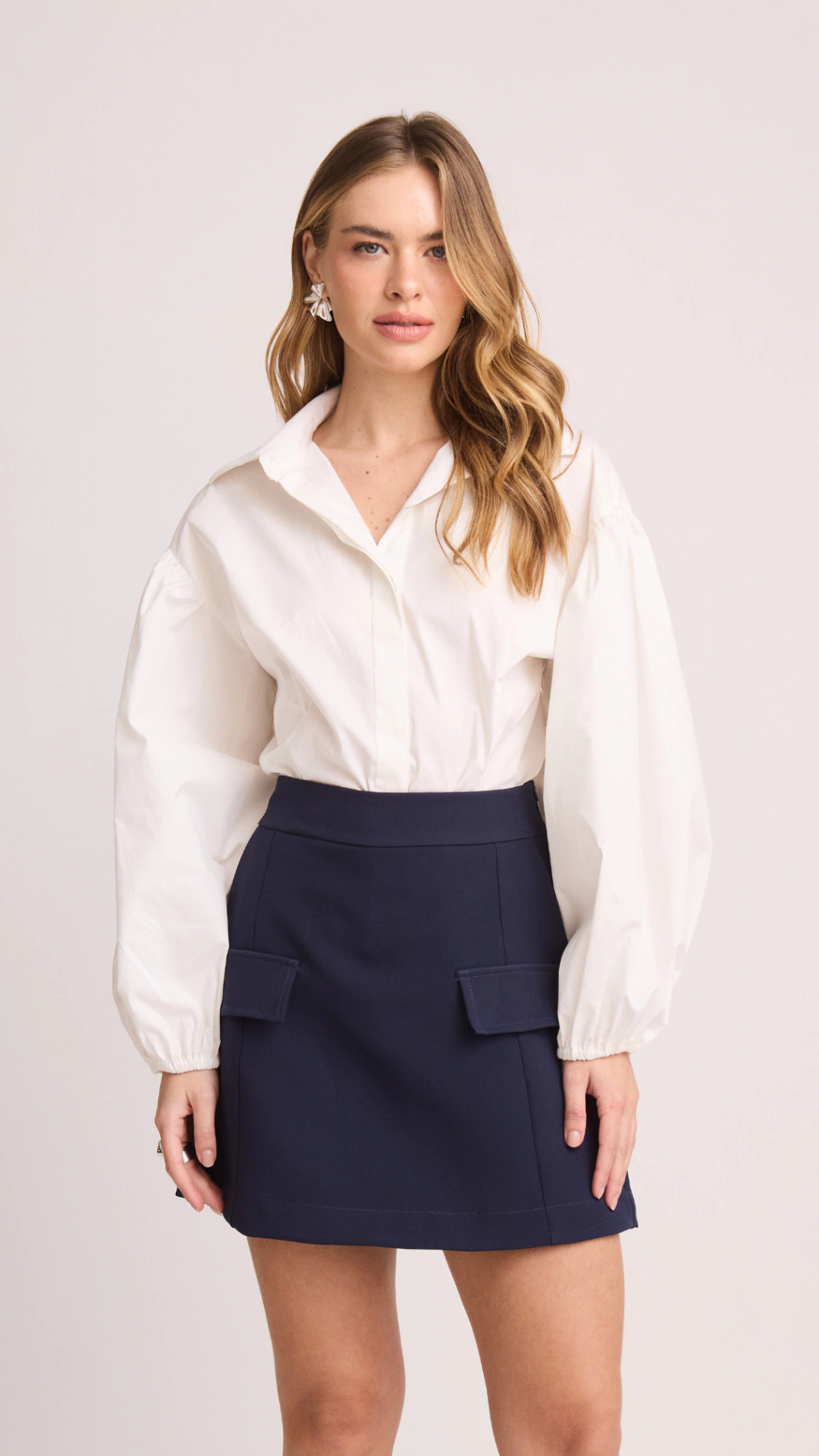 Um clássico com ar contemporâneo, o Short Cora traz o charme da modelagem de short saia em um design elegante e funcional. A peça combina o caimento estruturado com o conforto do tecido de crepe com elastano.